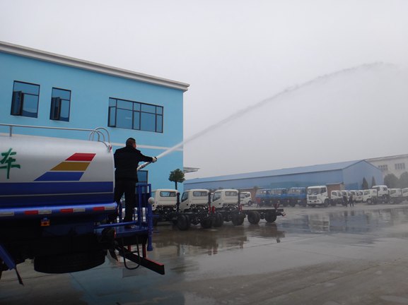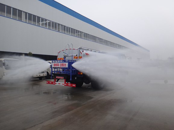 上裝配置:罐體采用4MM厚武鋼專用容積板制作,容積12立方,灑水車前沖(噴)后灑,帶側(cè)噴,罐體后帶工作平臺,平臺上安裝綠化灑水炮,灑水炮可全方位旋轉(zhuǎn),可連續(xù)調(diào)成直沖狀、大雨、小雨、毛毛雨,帶安全護欄,配備全國質(zhì)量評比第一名的大功率專用灑水泵,泵可自吸自排,安裝過濾網(wǎng),帶消防接口,可通過消防栓進水,帶自流閥,隨車選裝20米綠化卷盤,可噴灑農(nóng)藥。