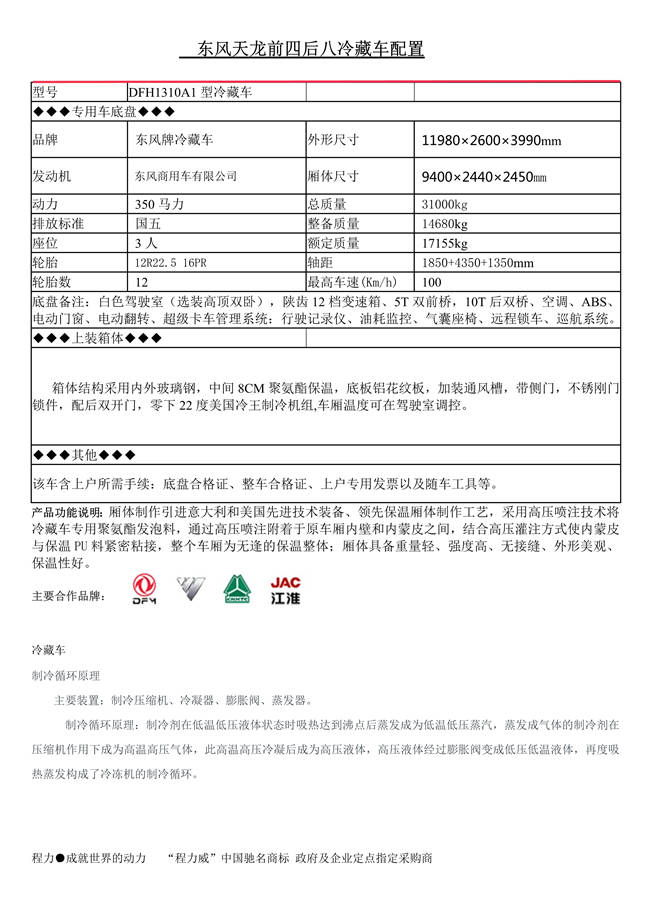 東風(fēng)天龍前四后八冷藏車