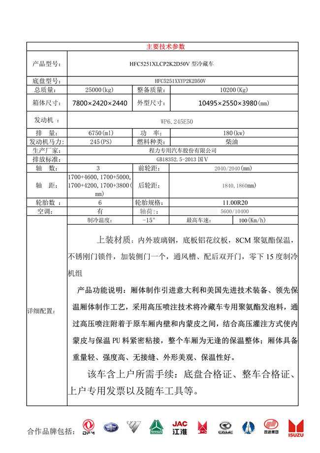 江淮格爾發7米8冷藏車