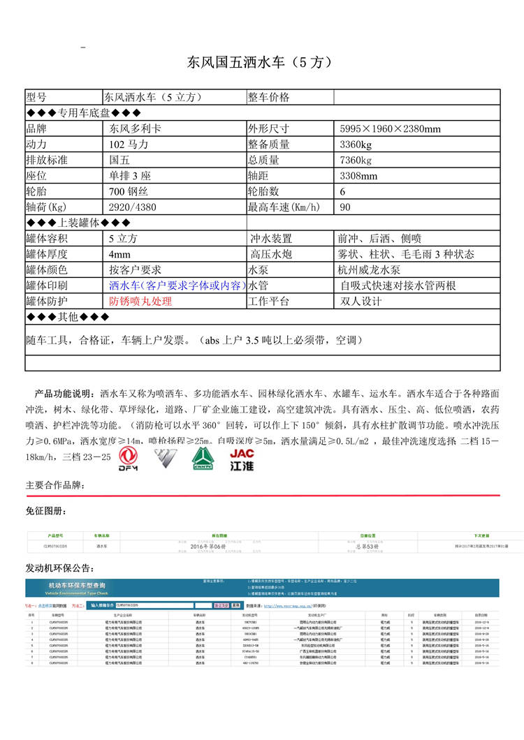 東風5方灑水車