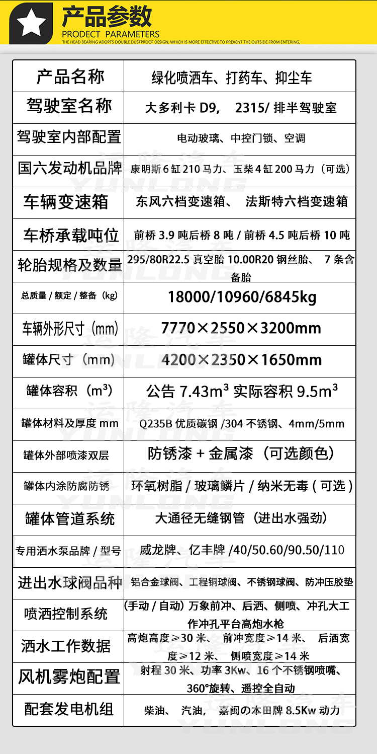 國(guó)六東風(fēng)D9型12立方灑水車(chē)